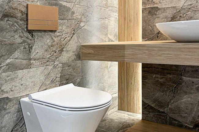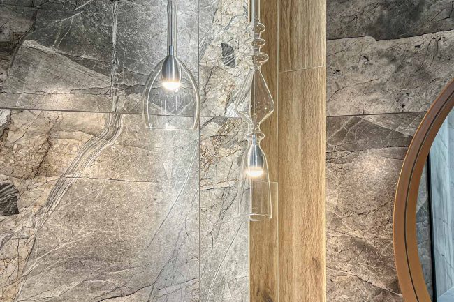 Nietuzinkowy kamień, gra świateł i umywalka w punkcie centralnym