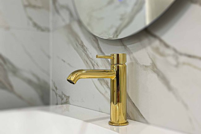 Złota, luksusowa, łazienka w stylu glamour
