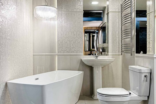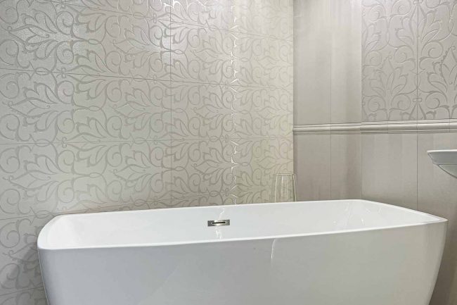 Ta łazienka to idealne miejsce dla miłośników klasycznego stylu i elegancji. Wszystkie elementy zostały wykonane z eleganckiej ceramiki, która wprowadza do wnętrza czystość i harmonię. Chromowana armatura, doskonale komponuje się z resztą wystroju, dodając pomieszczeniu lekkości i elegancji. Łazienka jest przestronna, co pozwala na swobodne poruszanie się, a jednocześnie jest bardzo przejrzysta i wygodna w użytkowaniu. Centralnym punktem jest wanna wolnostojąca, która zapewnia relaks i odpoczynek po długim dniu. Całość tworzy harmonijną, spójną i elegancką przestrzeń, która będzie idealnym miejscem dla osób ceniących sobie klasykę i elegancję.